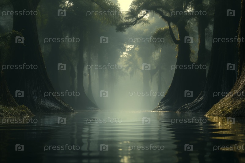 Таинственный затопленный лес, мрачный ландшафт залива