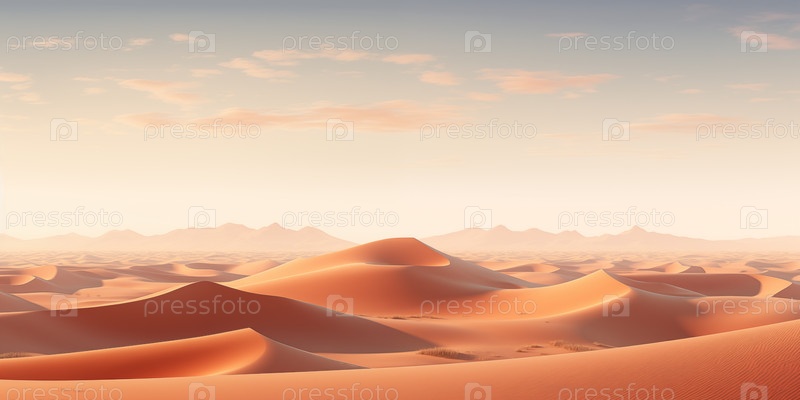 Пейзаж жаркой пустыни с песчаными дюнами, вечерний свет