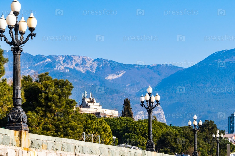 Городской пейзаж. Фонари на набережной. Ялта. Крым