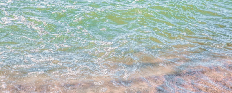 Кристально чистая лазурная вода с морской пеной, морской пейзаж на заднем плане