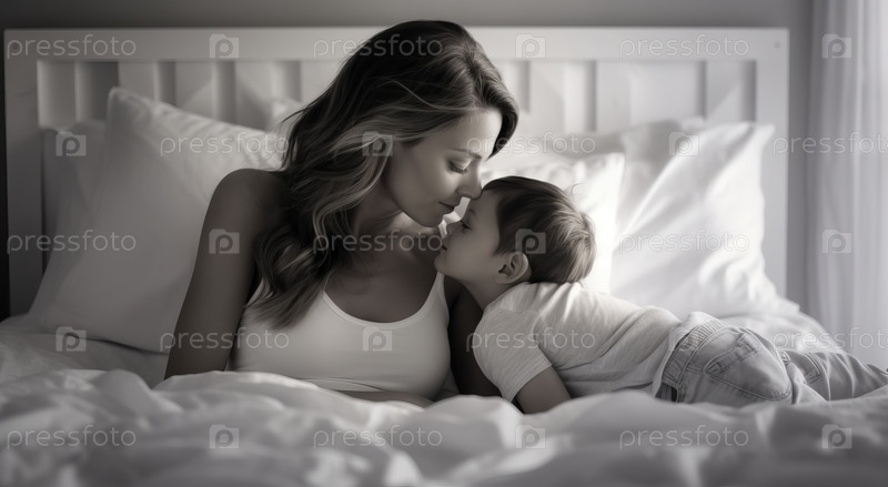 Любовь матери и ребенка. Семья дома. Концепция образа жизни