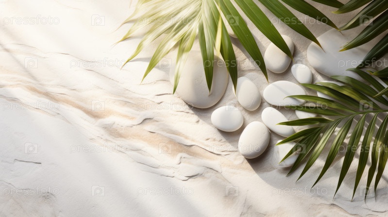 Пустой каменный постамент с зелеными листьями современный фон. Дизайн дисплея продукта, шаблон макета