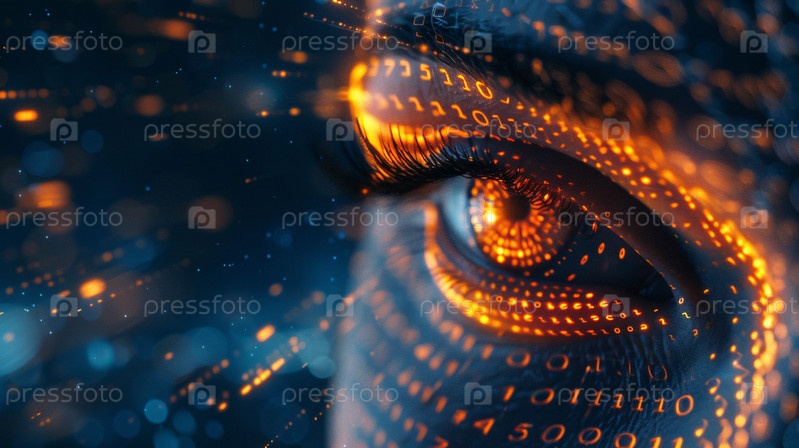 Цифровой глаз с футуристическим отражением двоичного кода