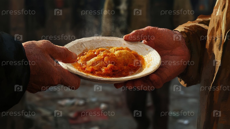 На снимке запечатлен трогательный момент совместного приема горячей пищи в холодный день, подчеркивающий сострадание и дух единения