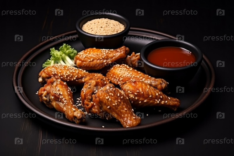 Эти куриные крылышки покрыты липким и ароматным соусом, что делает их идеальной закуской или основным блюдом для любого случая. Куриные крылышки идеально приготовлены