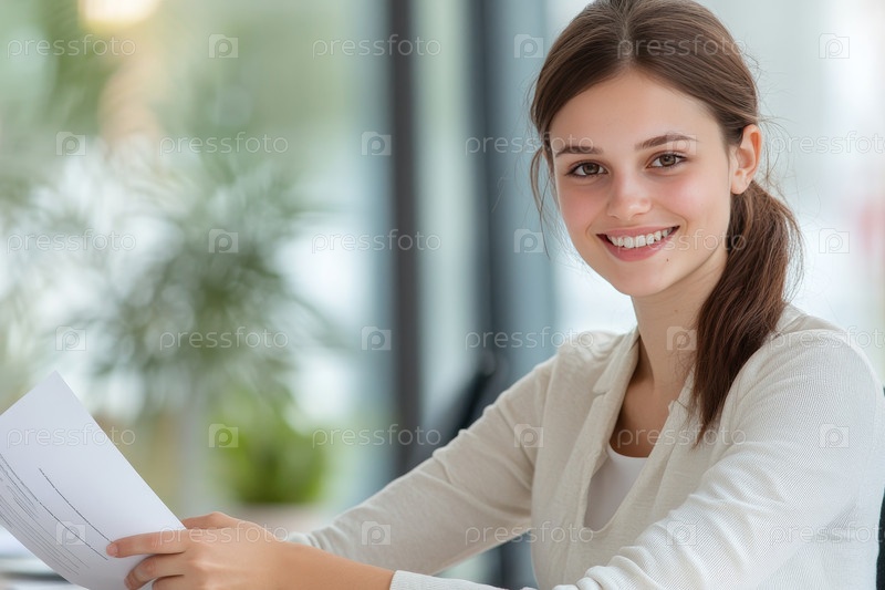 Профессиональная женщина в современной офисной среде держит документ