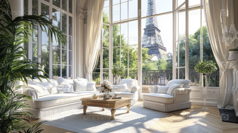 Роскошная парижская гостиная с видом на Эйфелеву башню