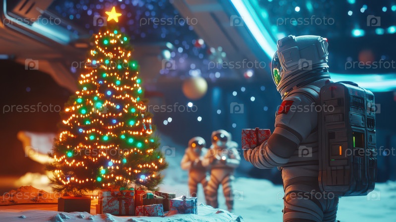 Астронавты празднуют Рождество с украшенной елкой в космосе