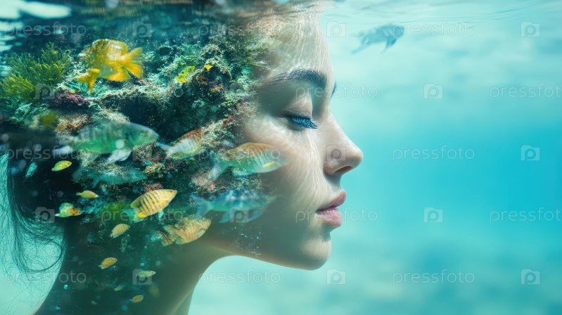 Лицо женщины, слившееся с подводным коралловым рифом