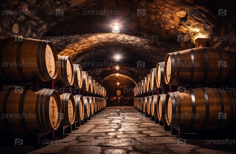 Старый погреб с бутылками и бочками под замком, где делают вино