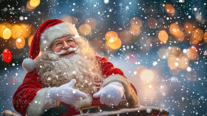 Санта-Клаус отдыхает в волшебной зимней стране чудес во время Рождества