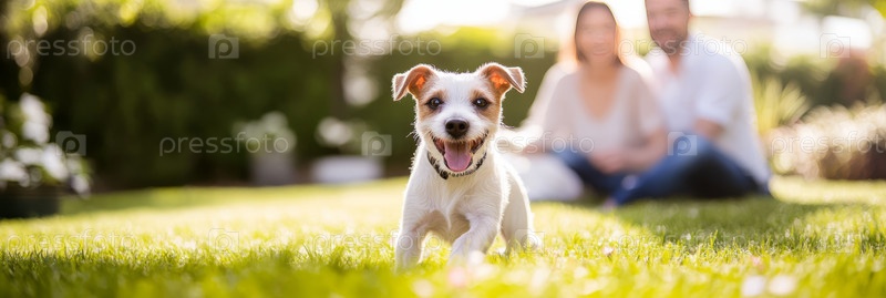Игривая собака наслаждается днем на свежем воздухе с друзьями