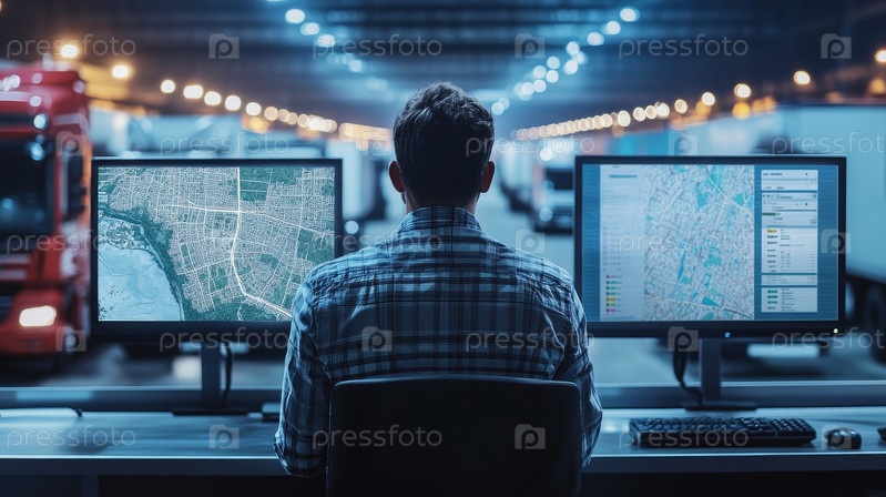 На этом снимке запечатлены специалисты по логистике, управляющие транспортными операциями в оживленном транспортном центре, что демонстрирует эффективность и координацию современных решений для цепочек поставок