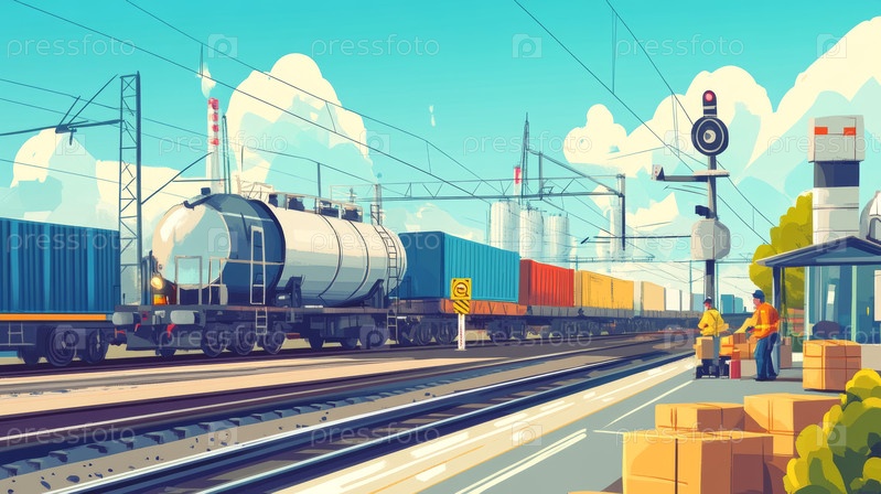 Современный городской грузовой железнодорожный транспорт в динамичном городском ландшафте
