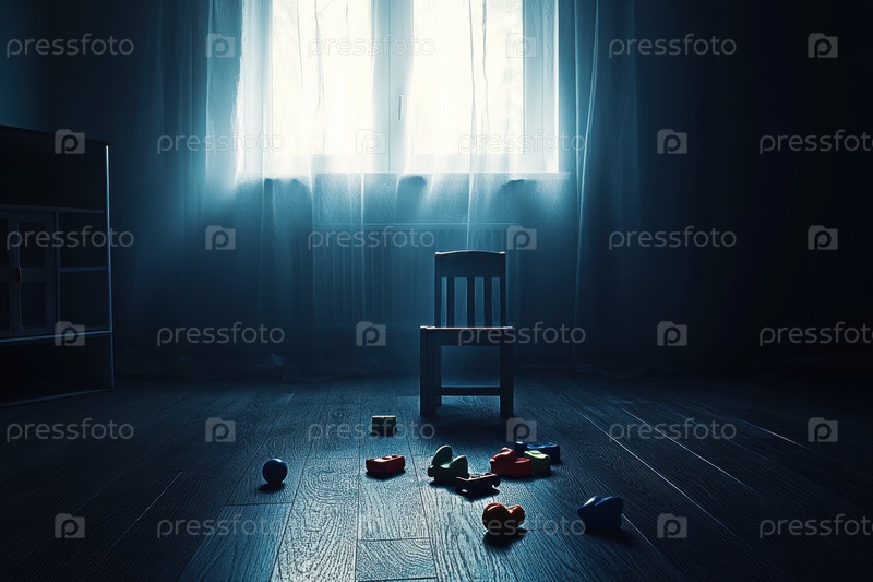 Заброшенная детская комната со сломанными игрушками и разбросанными предметами