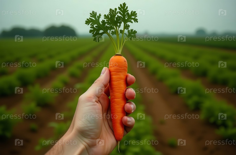 Большой огород Морковки, ферма, рассада, растения, овощи. Генеративный ИИ