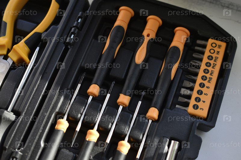 Набор инструментов в коробке. Инструменты для ремонта металла