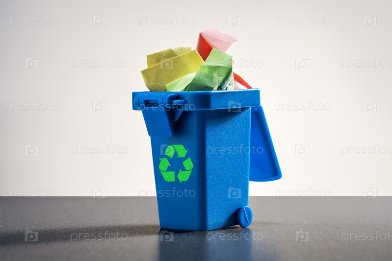 Сортировка бумажных отходов. Смятая бумага в контейнере для переработки