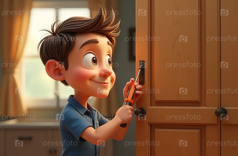 Сборщик мебели собирает ящик комода, мужчина держит отвертку. Генеративный искусственный интеллект