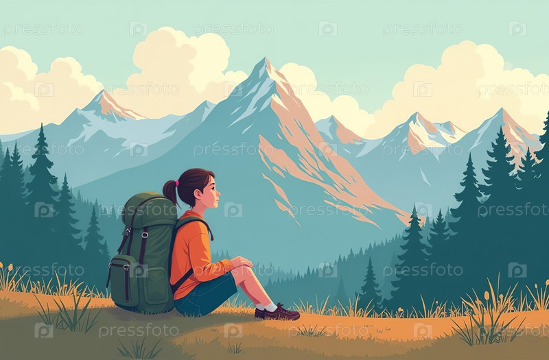 Женщина, путешествующая туристом в горах. Активный отдых на природе. Генеративный искусственный интеллект