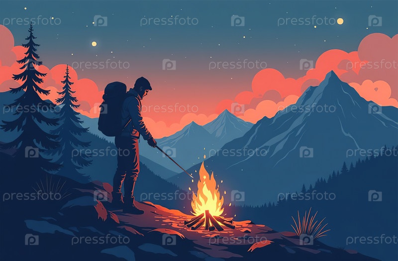 Человек, идущий пешком турист в горах. Активный отдых на природе. Генеративный ИИ