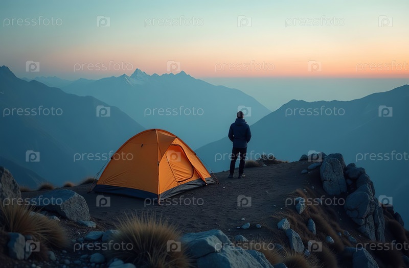 Человек, идущий пешком турист в горах. Активный отдых на природе. Генеративный ИИ