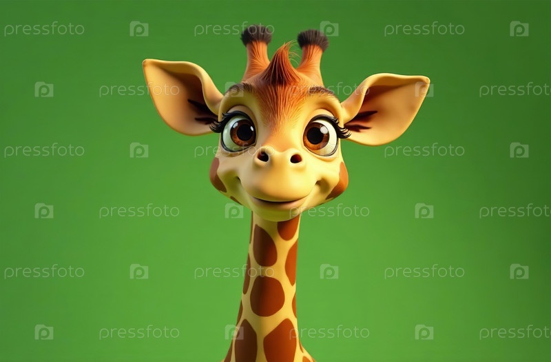 Милая детская иллюстрация жирафа, дикое животное в одежде улыбается. Генеративный искусственный интеллект