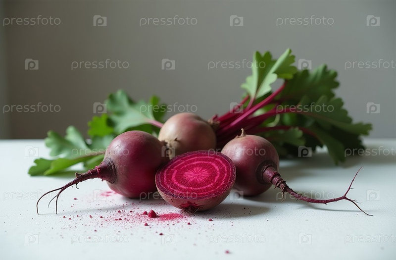 Свекла на столе, крупный план свежих овощей, яркая кухня. Генеративный искусственный интеллект