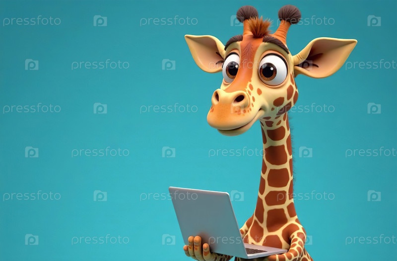 Милая детская иллюстрация жирафа, дикое животное в одежде улыбается. Генеративный искусственный интеллект