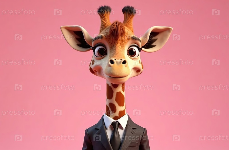 Милая детская иллюстрация жирафа, дикое животное в одежде улыбается. Генеративный искусственный интеллект