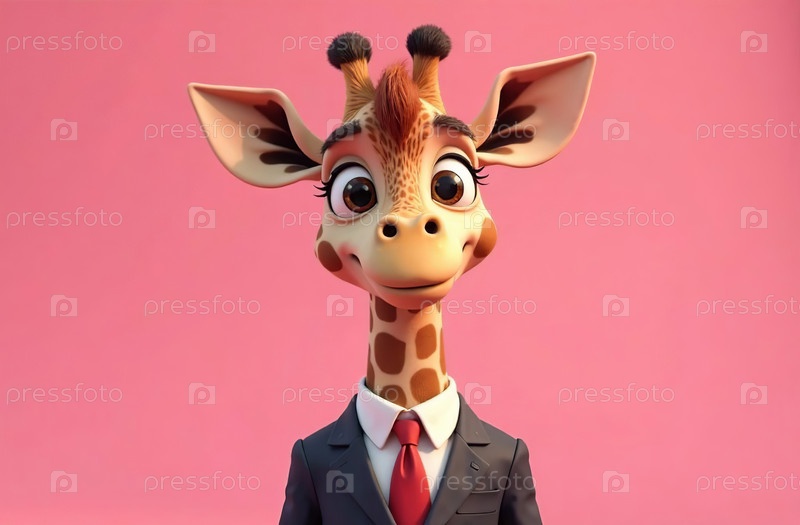 Милая детская иллюстрация жирафа, дикое животное в одежде улыбается. Генеративный искусственный интеллект