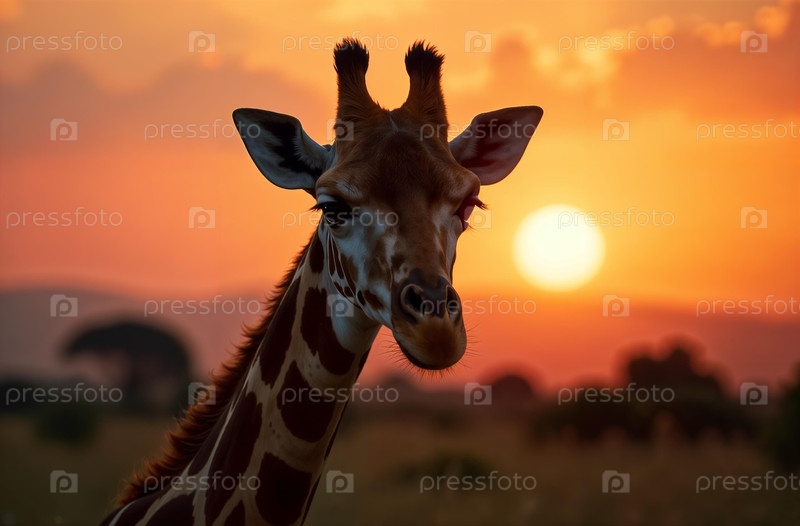Жираф в среде обитания Африка. Африканская саванна. Длинная шея. Генеративный ИИ