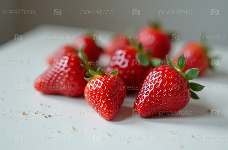 Клубника на столе, крупный план свежих ягод, яркая кухня. Генеративный искусственный интеллект