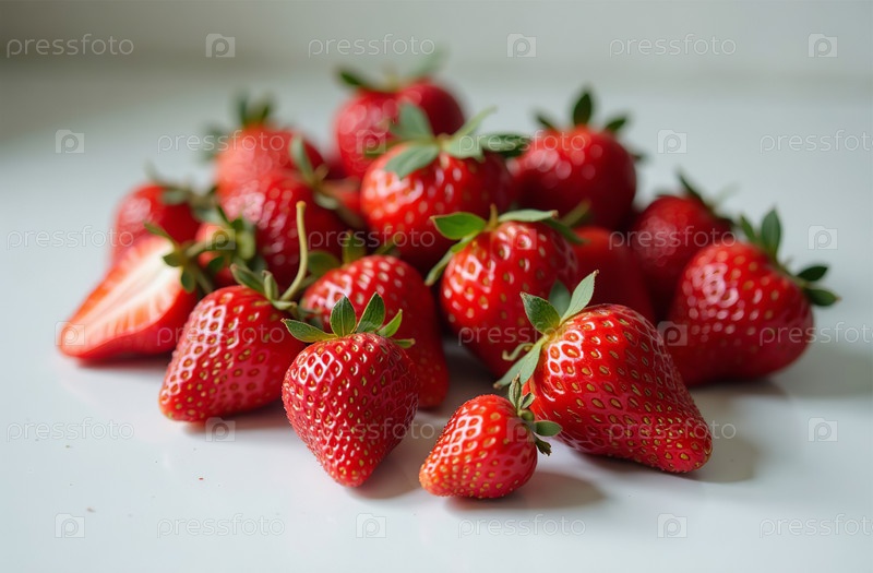 Клубника на столе, крупный план свежих ягод, яркая кухня. Генеративный искусственный интеллект