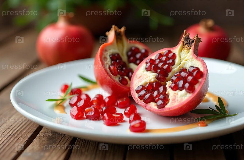 Гранат на столе, крупный план свежих фруктов, яркая кухня. Генеративный ИИ