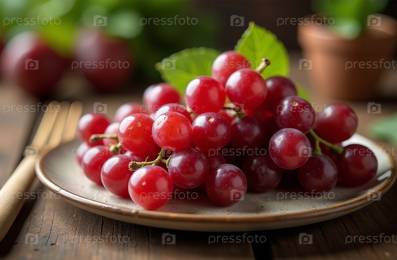 Виноград на столе, крупный план свежих фруктов, яркая кухня. Генеративный искусственный интеллект