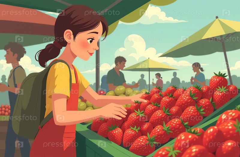 Женщина покупает клубничный рынок, руки крупным планом, ягодный торговый центр. Генеративный искусственный интеллект