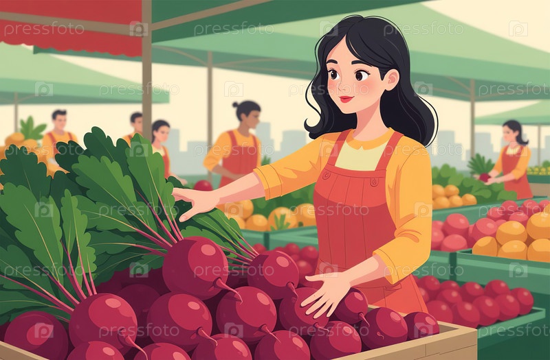 Женщина покупает свеклу на рынке, руки крупным планом, овощной торговый центр. Генеративный искусственный интеллект