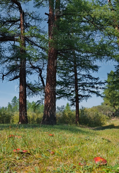 Россия, Восточная Сибирь, Бурятия. Маслята в Саянской тайге на солнечных сосновых опушках в разгар лета
