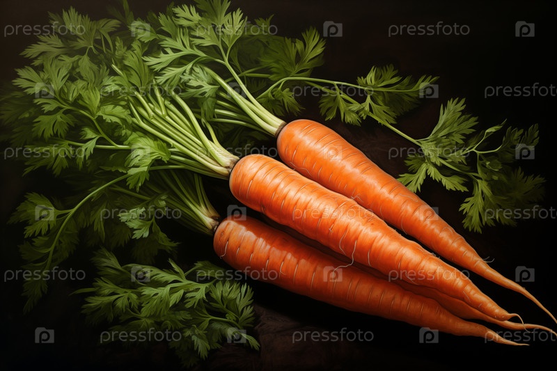 Три оранжевые морковки на темном фоне