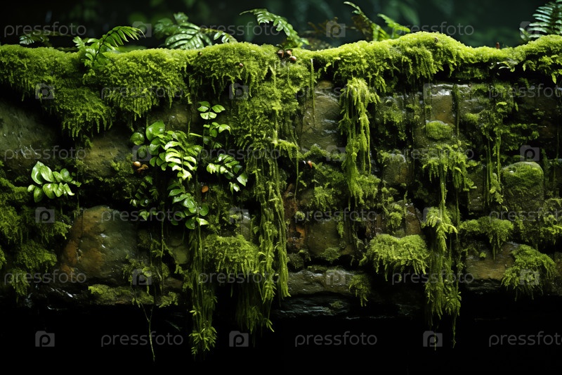 Естественный фон, замшелая каменная стена с текстурой растений