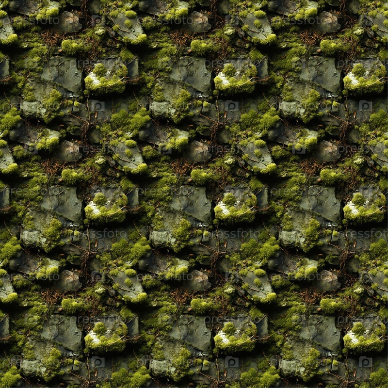 Бесшовный моховой фон, мшистая текстура поверхности камня