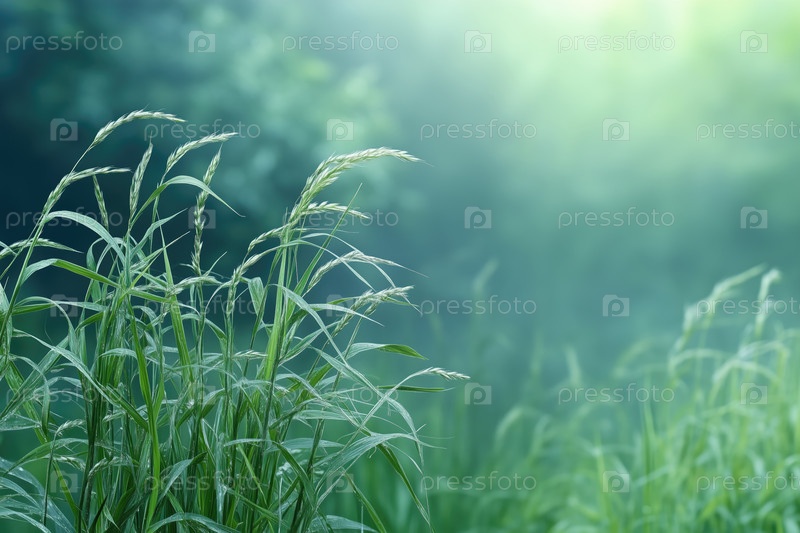 Зеленая трава в утреннем свете. Естественный фон