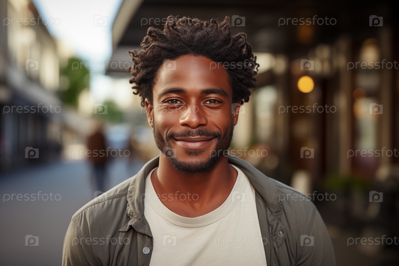 Портрет улыбающегося молодого человека на размытом городском фоне