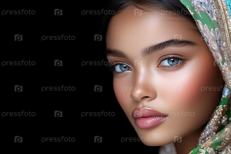 Крупным планом портрет красивой молодой мусульманки с ярким макияжем