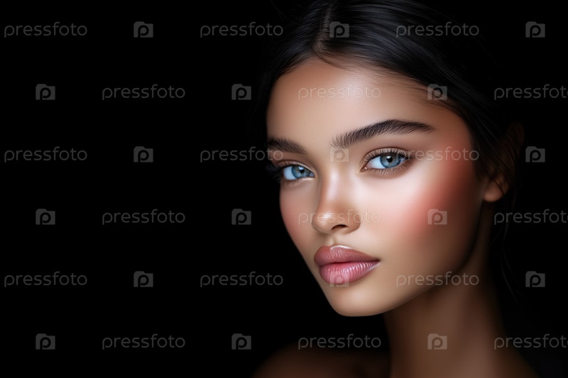 Красивая молодая женщина с голубыми глазами и макияжем на черном фоне