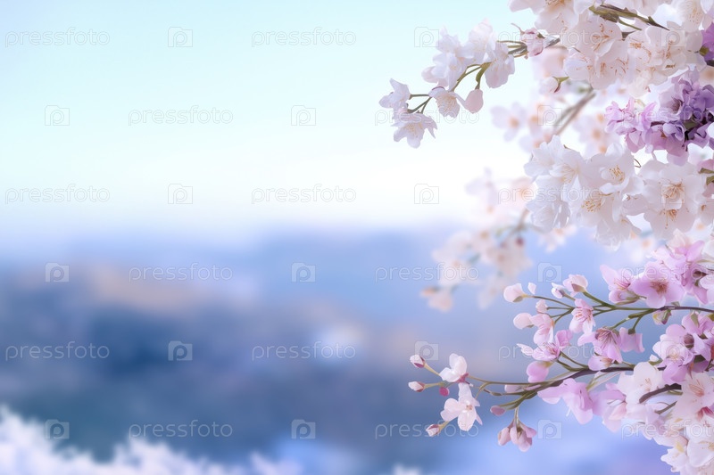 Цветение вишневых цветов на фоне синего неба с copyspace