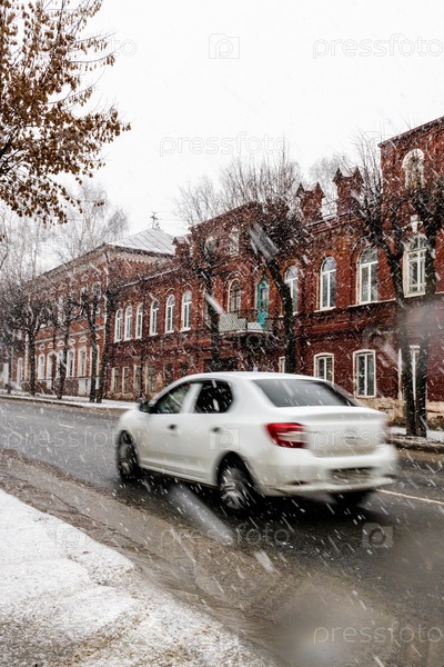 Автомобиль на улице в Костроме во время снегопада