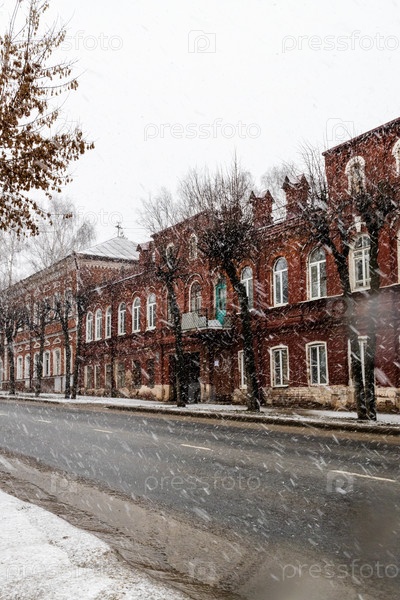 Мокрая улица в Костроме во время снегопада