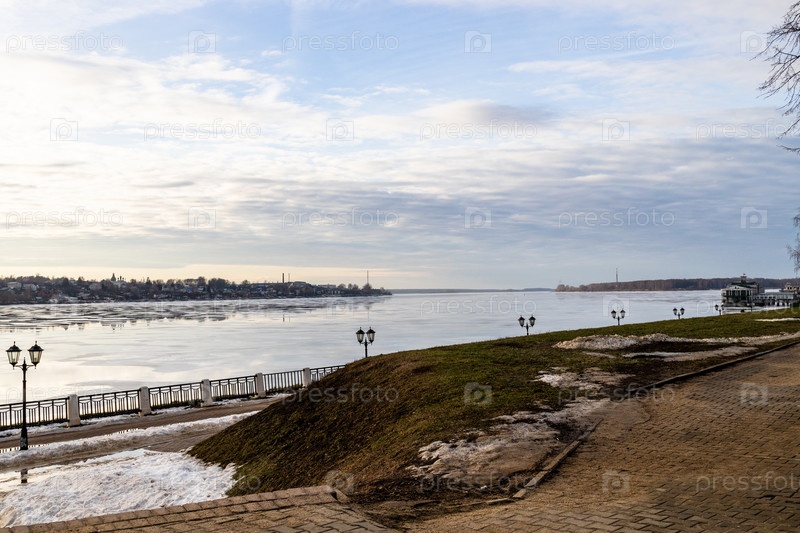 Набережная реки Кострома зимним вечером
